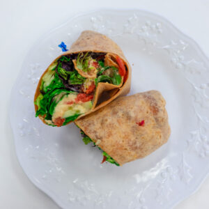 (Your choice of tortilla:, sun dried tomato tortilla, whole wheat or flour tortilla – gluten free tortilla $1.00)